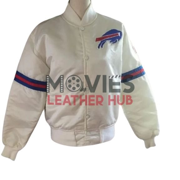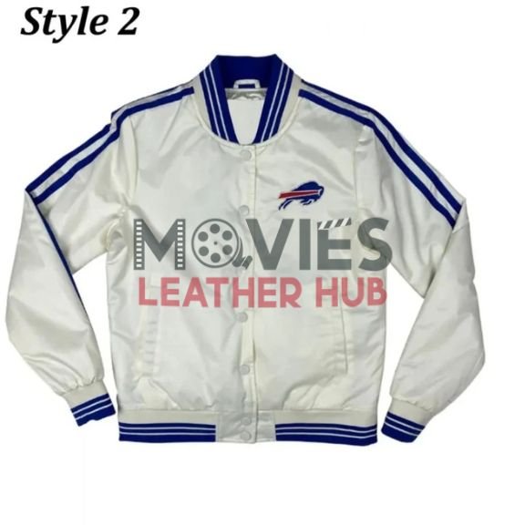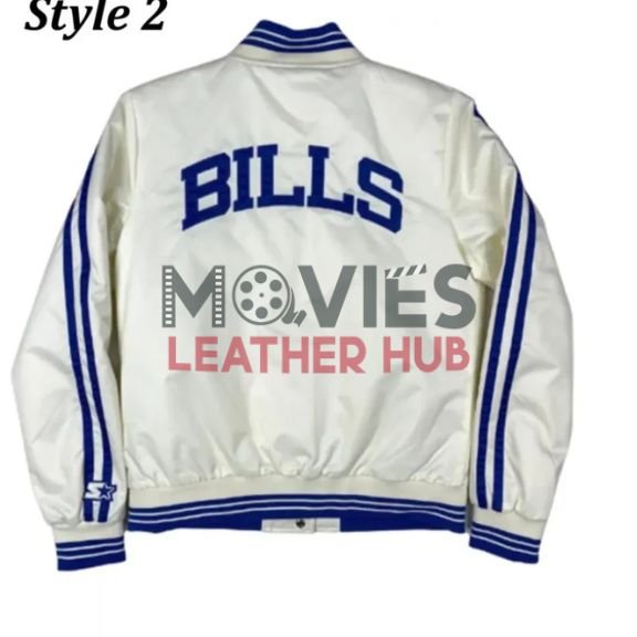 Show off your team spirit in style with the Buffalo Bills Bomber Blue and White Starter Satin Jacket! This classic piece brings together sports and fashion with its premium satin fabric, vibrant team colors, and bold Buffalo Bills logo. The rib-knit collar, cuffs, and hem give it a snug fit, while the lightweight design makes it perfect for layering. Whether you’re heading to the stadium or just want to rep your team on the streets, this jacket is a must-have for every Bills fan. Get yours now from Movies Leather Hub and enjoy top-notch quality with fast shipping!