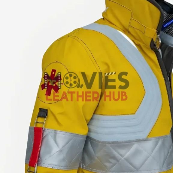 The David Martinez Cyberpunk jacket is a bold statement piece, featuring a bright yellow base with accents of black and red embroidery. It is crafted using synthetic leather to guarantee longevity, comfort, and style. The reflective parts on the jacket complete the futuristic look, which is sure to impress both gamers and streetwear lovers.