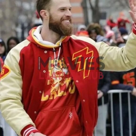 Celebrate victory in style with the Harrison Butker Super Bowl LVII Parade Varsity Jacket! Inspired by the iconic look worn during the championship parade, this jacket is a must-have for every Kansas City Chiefs fan. Crafted with premium wool and genuine leather sleeves, it delivers the perfect combination of comfort, durability, and bold team spirit. Whether you’re heading to a game, a night out, or just want to rep your team in style, this varsity jacket has got you covered. Order now at Movies Leather Hub and get fast shipping! 🏈🔥