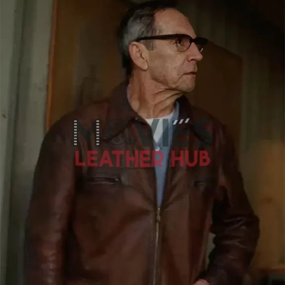 Jonathan Hyde The Brutalist Dark Brown Leather Jacket