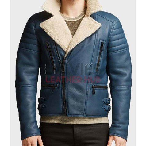 Be the first to review “Men Blue Shearling Leather Biker Jacket”