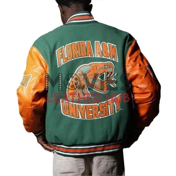 Rep your Florida A&M University pride in style with this Green and Orange Varsity Jacket! Crafted for ultimate comfort and a bold look, this jacket is perfect for game days, campus life, or casual outings. The premium wool body and genuine leather sleeves make it both durable and stylish. Whether you’re an alumnus, student, or just a fan, this Florida A&M varsity jacket is a must-have. Get yours today at Movies Leather Hub and show off your Rattler spirit! 🐍🔥