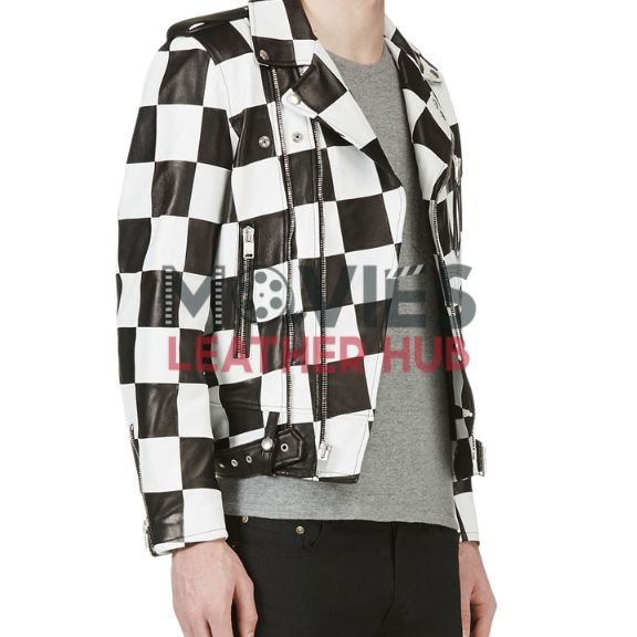 Men’s Motorcycle Checkerboard Leather Jacket