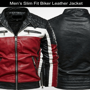Men’s Slim Fit Black White and Red Leather Biker Jacket