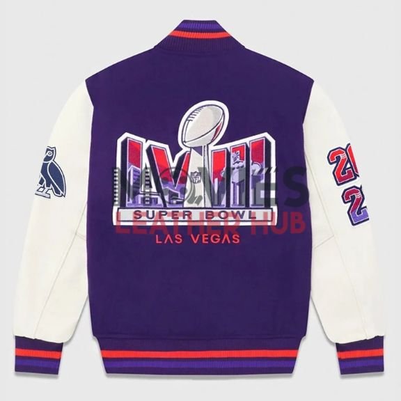 Step up your style with the OVO Super Bowl LVIII Varsity Jacket—a must-have for football fans and streetwear lovers alike. This premium jacket blends classic varsity aesthetics with modern comfort, making it perfect for game day or everyday wear. Crafted from high-quality materials, it features bold details and an ultra-cool design to showcase your Super Bowl LVIII spirit. Grab yours now at Movies Leather Hub and enjoy fast shipping with exclusive discounts!