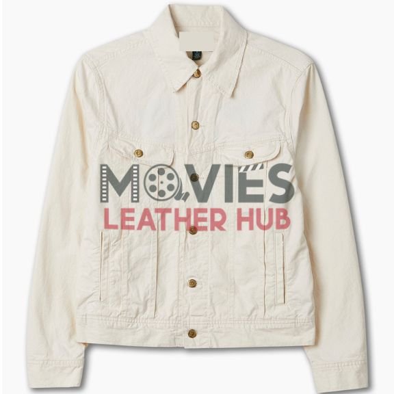 Polo Bear Embroidered White Trucker Jacket
