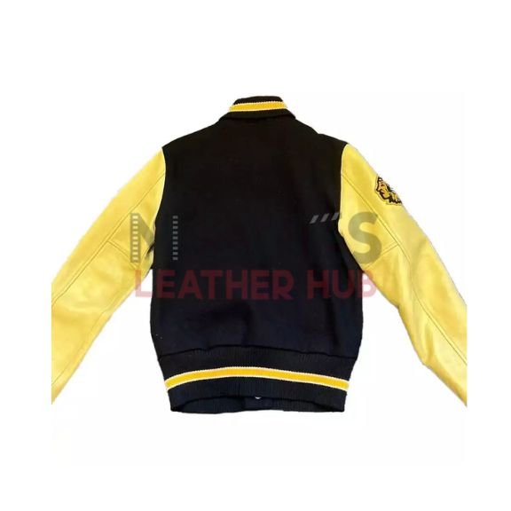 Celebrate the spirit of New York City champions with this Polo Ralph Lauren Rugby Varsity Letterman Jacket. Crafted from premium materials, it combines a wool-blend body with genuine leather sleeves for a classic varsity look. The jacket features an array of signature championship-inspired patches, including the iconic tiger patch that Ralph Lauren first introduced in the ’90s. With its ribbed collar, cuffs, and hem, along with a snap-front closure, this jacket offers both style and comfort. Perfect for adding a touch of collegiate-inspired fashion to your wardrobe, it’s suitable for various occasions, from casual outings to special events. Handmade with attention to detail, this customizable jacket reflects your unique style. Don’t miss out on this limited sale offer; grab yours now from Movies Leather Hub!