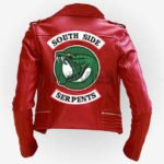 For those seeking out a truly audacious jacket, look no further. The bold red Southside Serpents logo, paired with the fierce confidence of the rest of the jacket, is complemented by a distinctly eye-catching collar and numerous pockets, along with a zipper that allows full style with practicality.