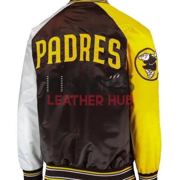 Step up your game with the San Diego Padres Raglan Reliever Tri-Color Varsity Satin Jacket! This stylish and comfortable jacket is a must-have for every Padres fan. Designed with a bold tri-color theme, it offers a sporty yet classic look that makes you stand out. The satin finish gives it a premium feel, while the raglan sleeves provide a relaxed and comfortable fit. Whether you’re heading to the ballpark or just out and about, this jacket keeps you looking sharp. Grab yours now from Movies Leather Hub and show off your team spirit in style!