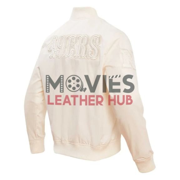 Show off your 49ers pride with this cream varsity jacket. It’s got that clean, sporty look with a soft feel and bold team vibes. The 49ers logo stands out just right, and the cream color makes it super easy to match with anything. Whether you’re heading to the game, hanging with friends, or just repping your team—this jacket has your back.