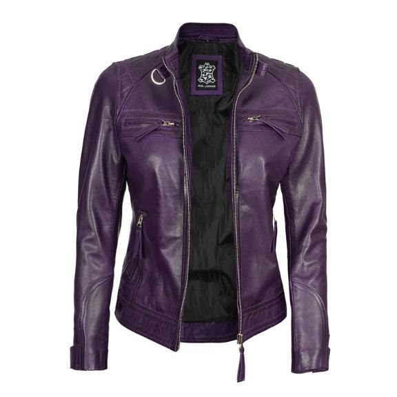 Add a pop of color to your wardrobe with the Women’s Purple Quilted Cafe Racer Leather Jacket, now available at Movies Leather Hub. This jacket blends the edgy cafe racer style with a vibrant purple hue, making it a standout piece for any fashion-forward individual.