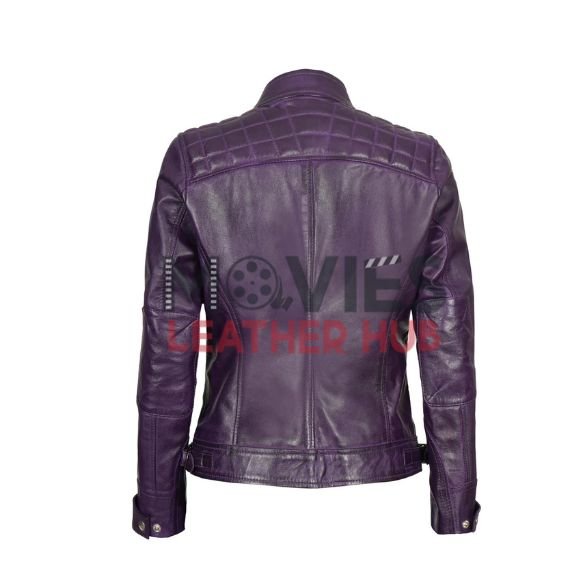 Women’s Purple Quilted Cafe Racer Leather Jacket